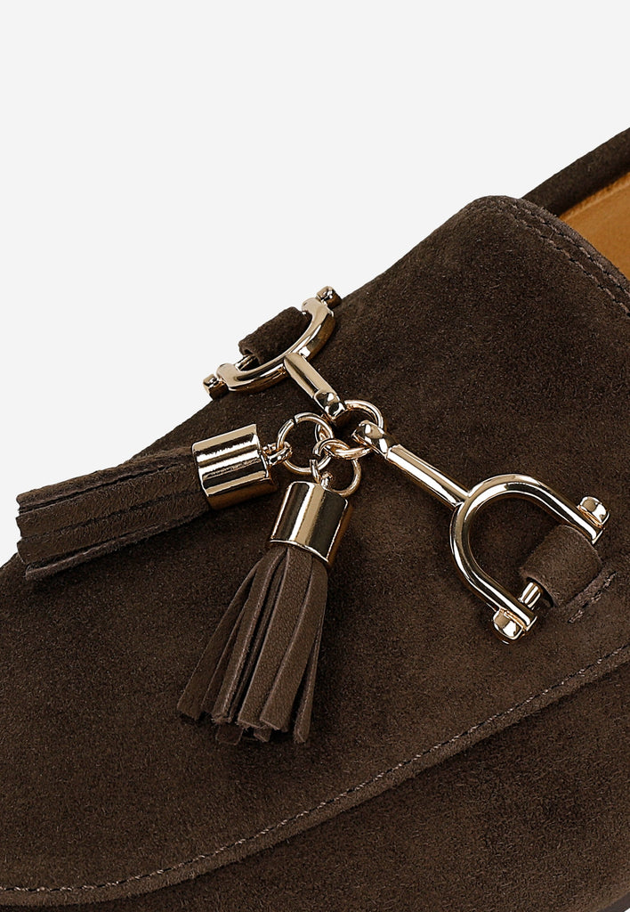 Wojas Brown Velour Leather Loafers with Fringes | 4637762