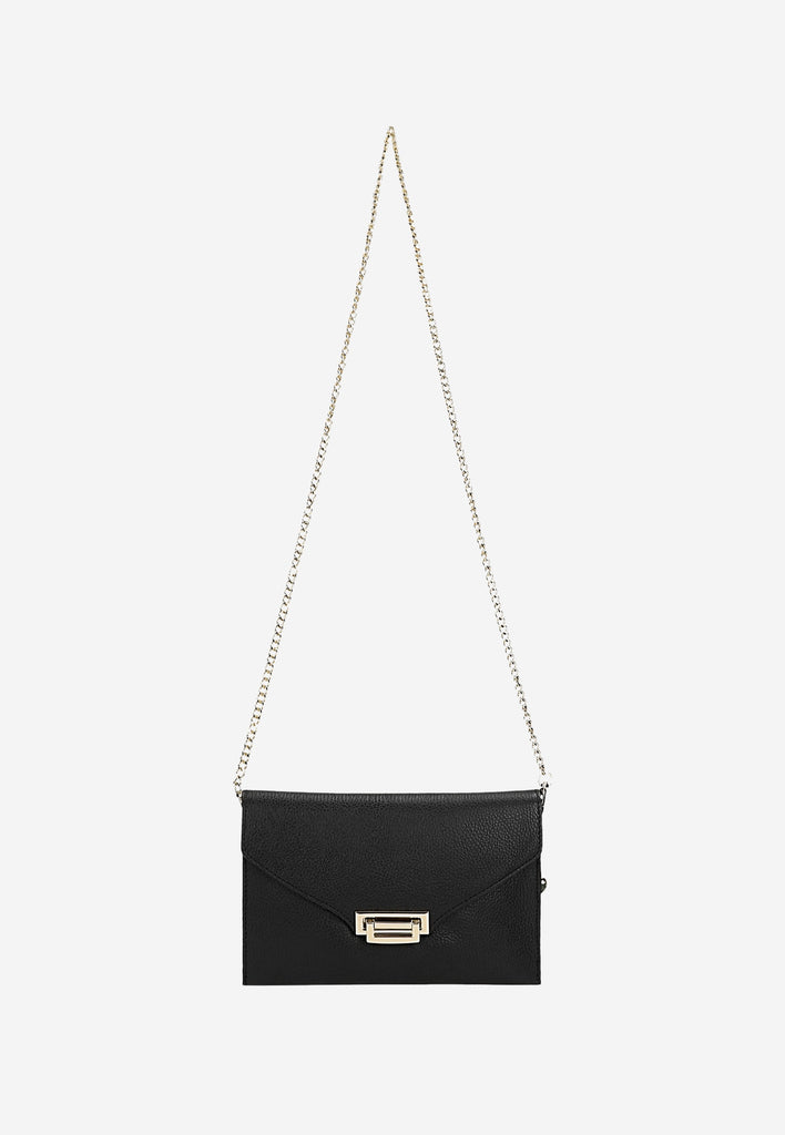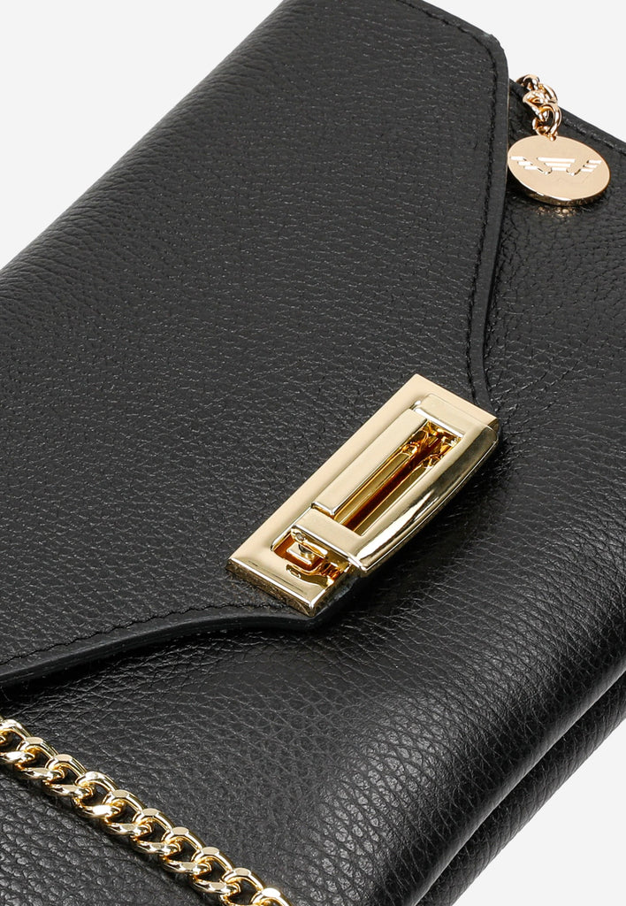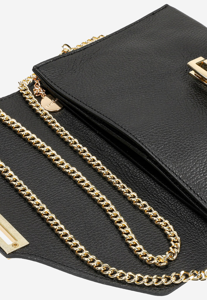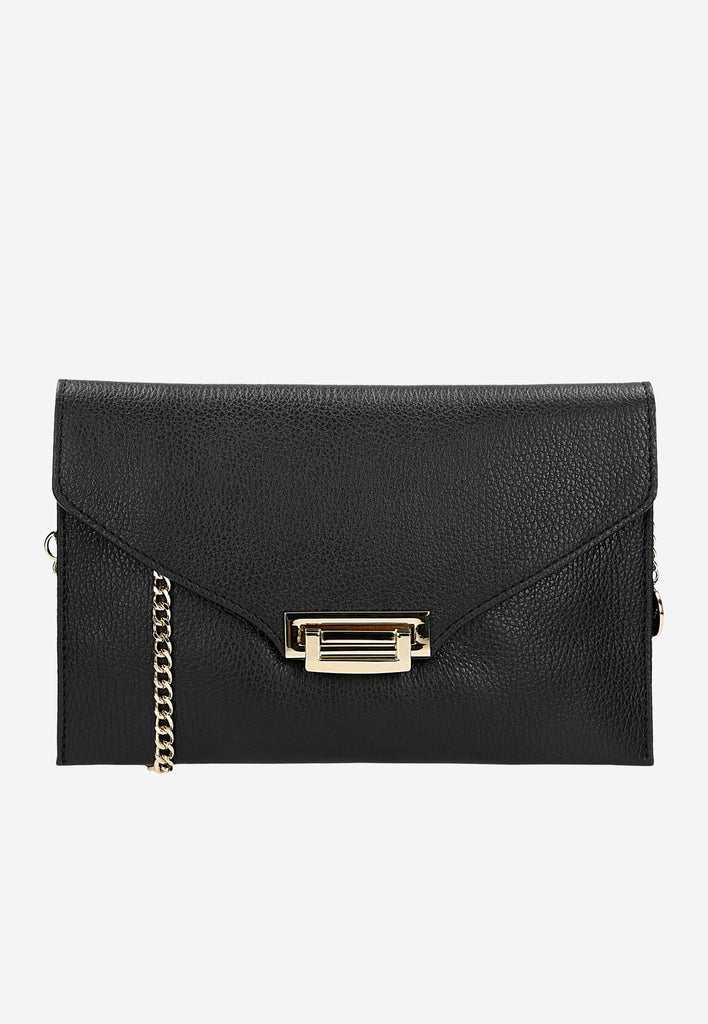A very beautiful and elegant black crossbody bag will be a great choice for any occasion. This bag is made of high-quality natural leather and has a long strap that allows you to wear it on or over your shoulder.