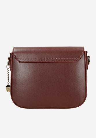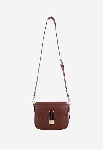Wojas Burgundy Leather Crossbody Bag with Golden Details | 8045055