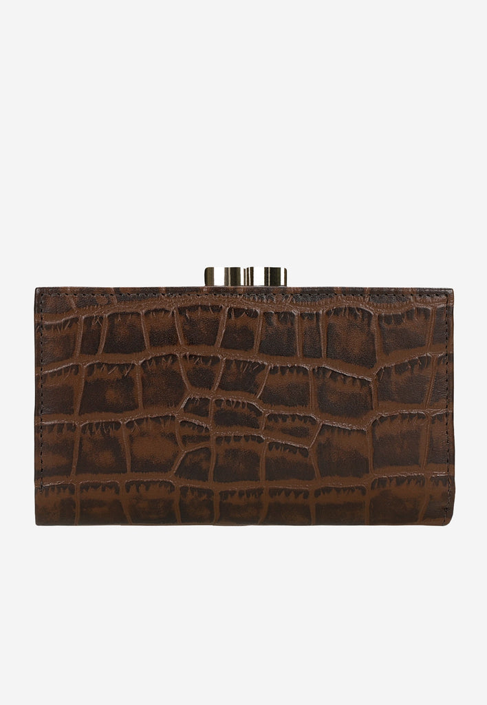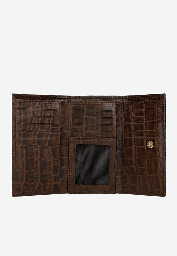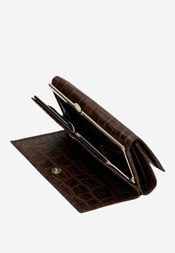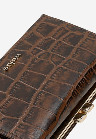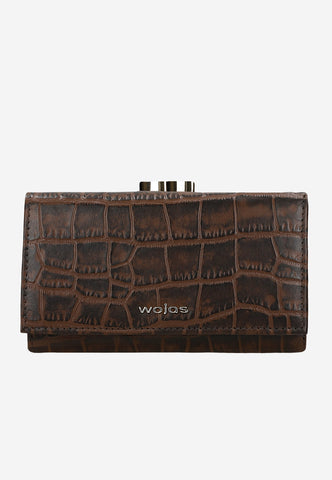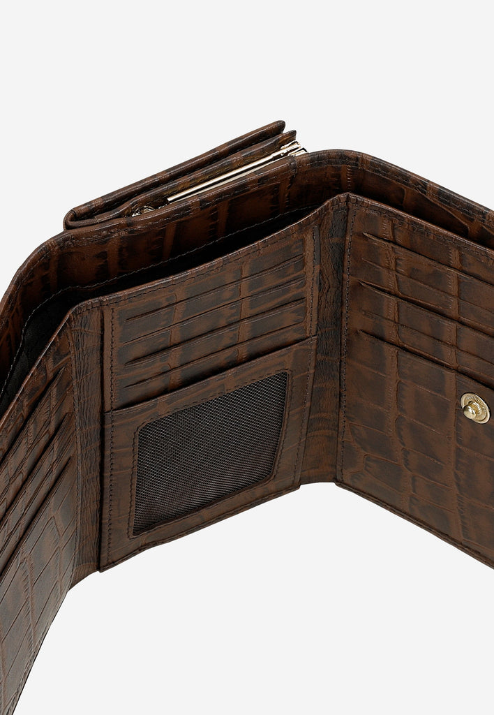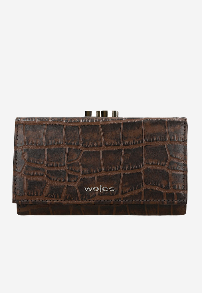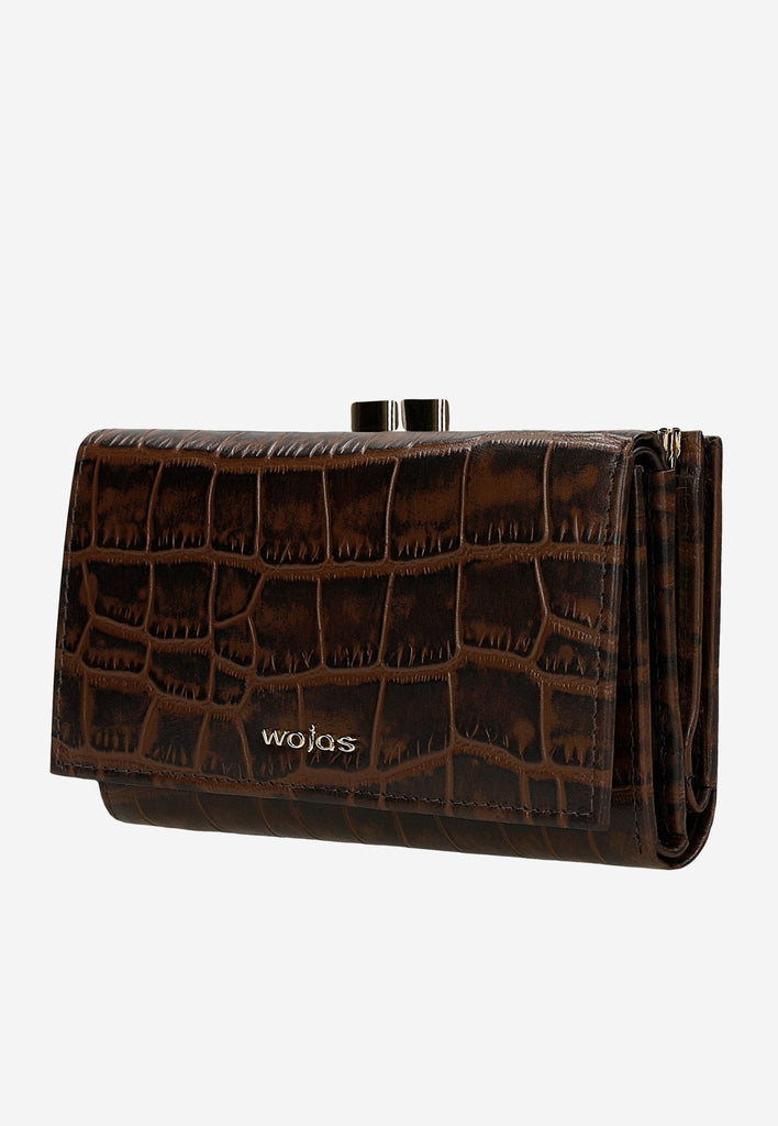 A dark brown snap wallet is a basic accessory for every woman. The comfort of use is ensured by a well-organized interior, which is full of compartments and pockets.