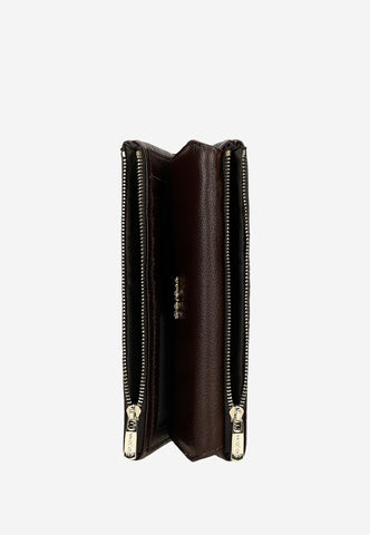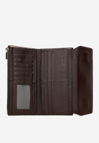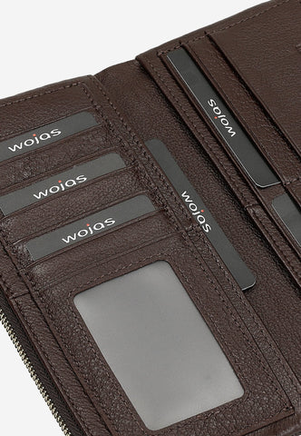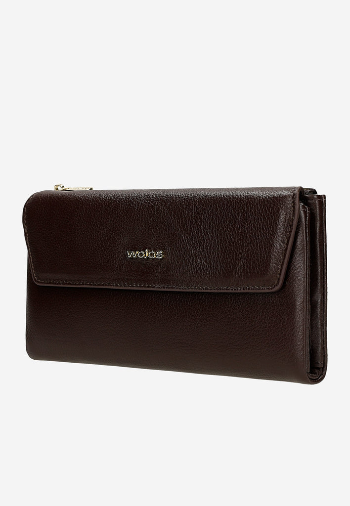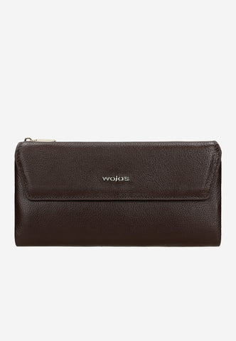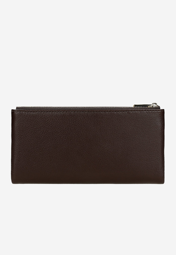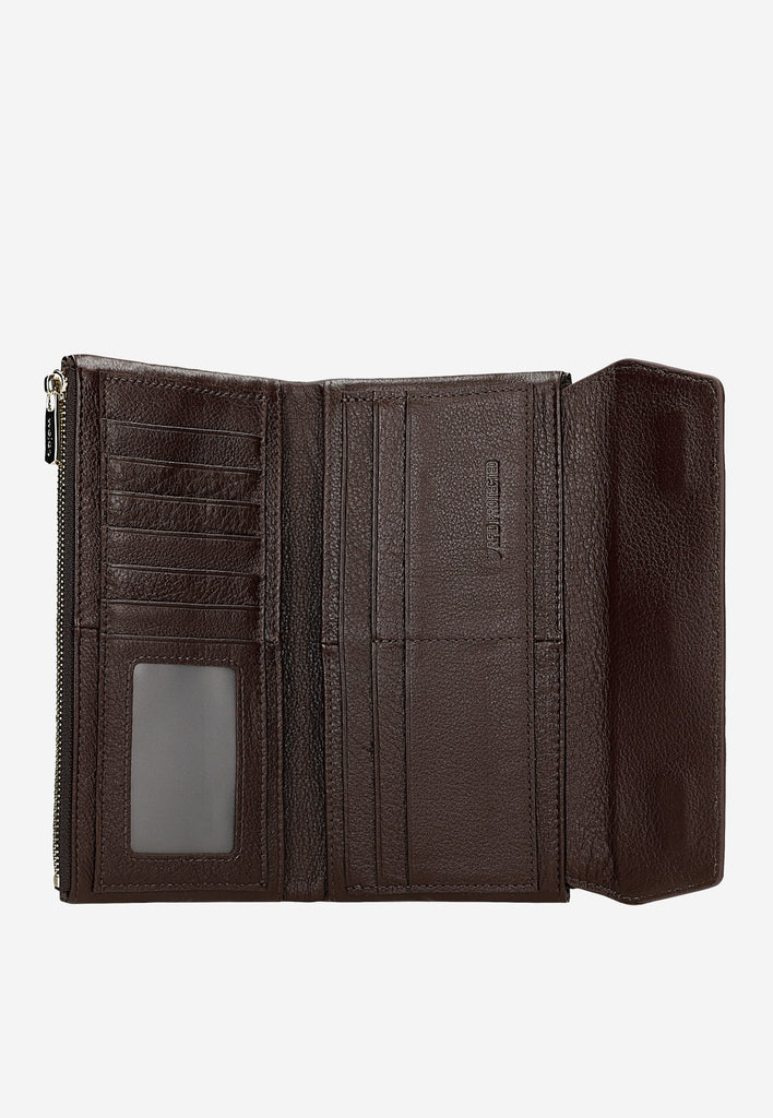 A dark brown snap wallet is a basic accessory for every woman. The comfort of use is ensured by a well-organized interior, which is full of compartments and pockets.
