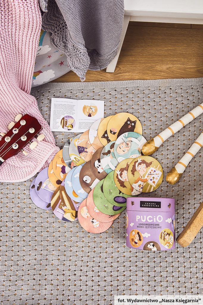 "Pucio. Logopedyczne memo języczkowe" is not only a traditional game, but also an interactive way to develop the language skills of the youngest children. In the box, you will find colorful playing cards and a set of speech therapy exercises that help improve the pronunciation of sounds. The illustrations show Pucio and his family in various situations, inspiring fun and effective exercises.