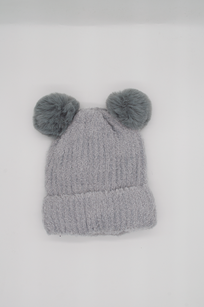 Light Gray Girls' Alpaca Beanie with Two Pom-Pom | 083-LG