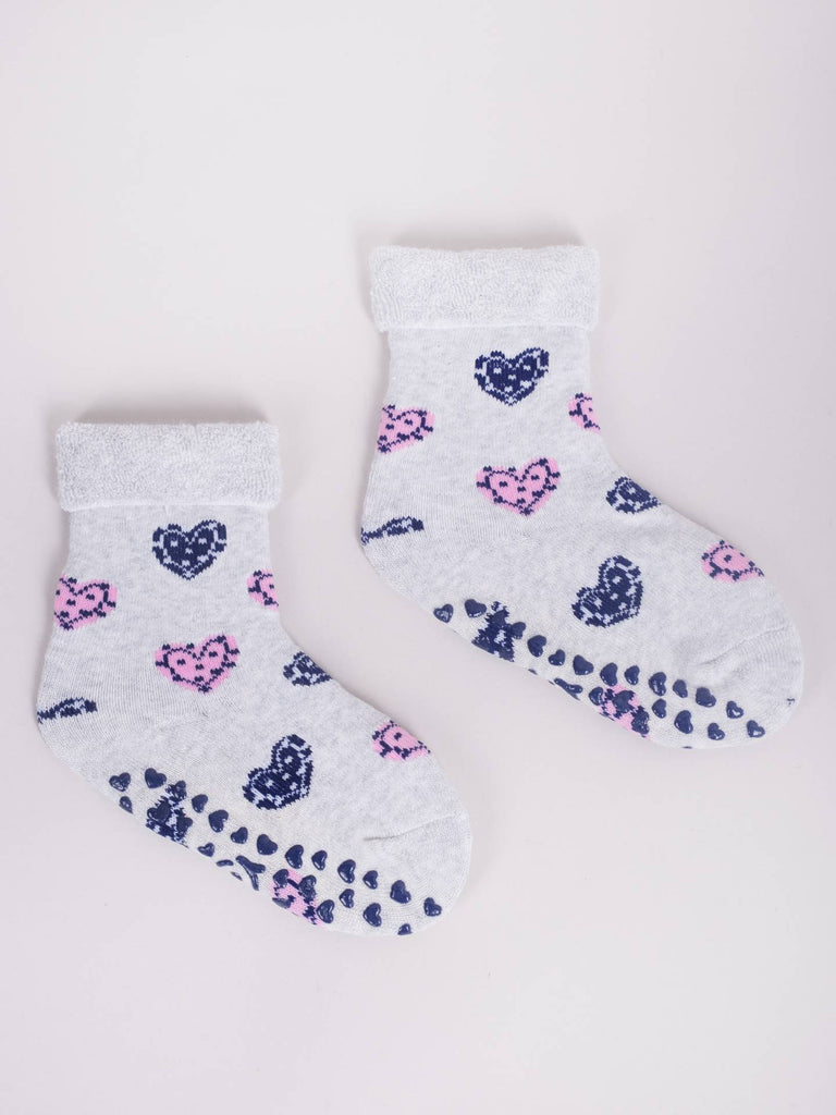 YO! Girls' Light Gray Ankle Socks with ABS and Hearts Pattern | SKF-0005GAA-LG1