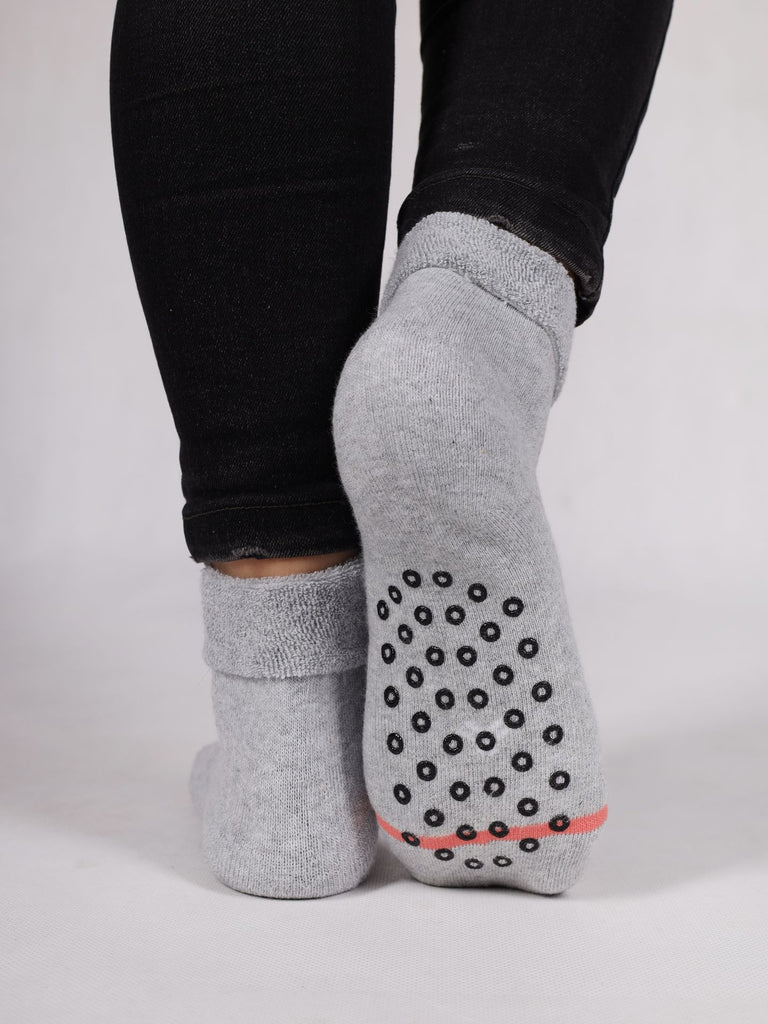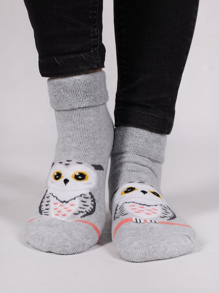 YO! Girls' Light Gray Ankle Socks with ABS and Owl Embroidery | SKF-0005GA-LG1