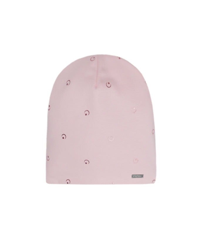 Girls' Light Pink Cotton Beanie with Golden Print ~ 4-10 years | 48/108-C