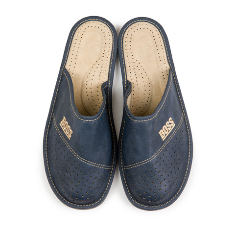 Wonderful dark blue slippers made of high-quality natural leather. This traditional Polish product is characterized by comfort and durability.