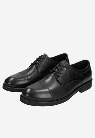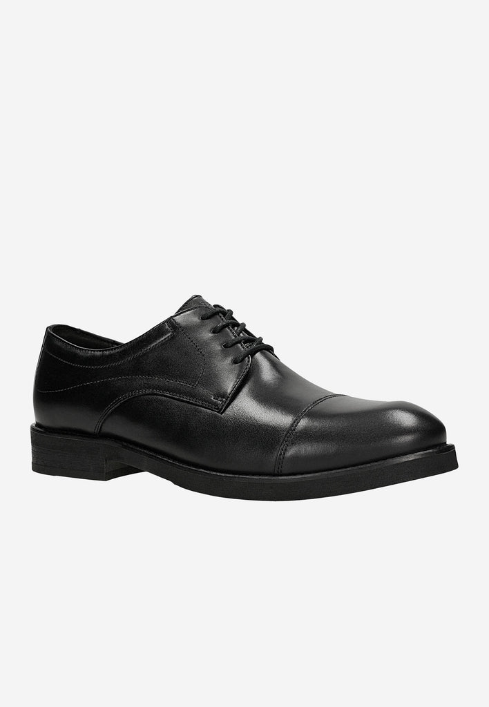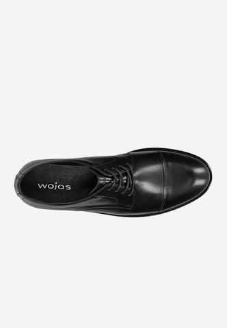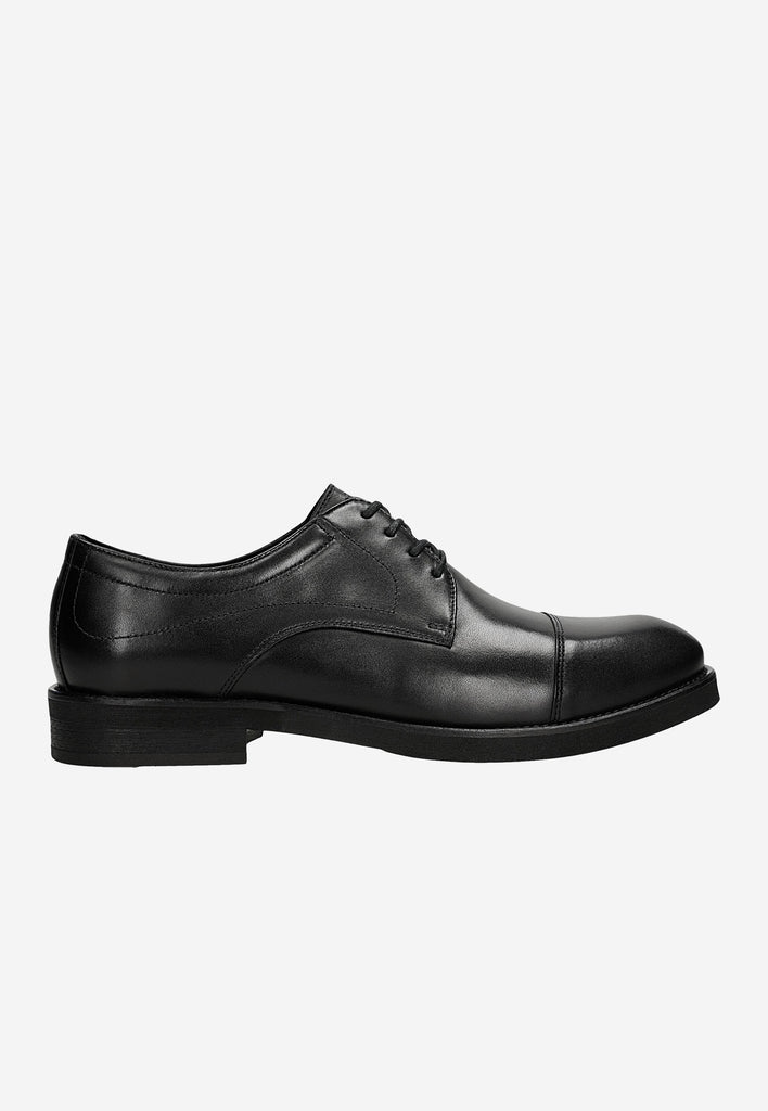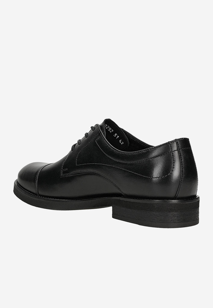 Stylish black dress shoes made of high-quality natural leather. These shoes have been designed in accordance with the latest fashion trends, which makes them an essential element of every gentleman's wardrobe.