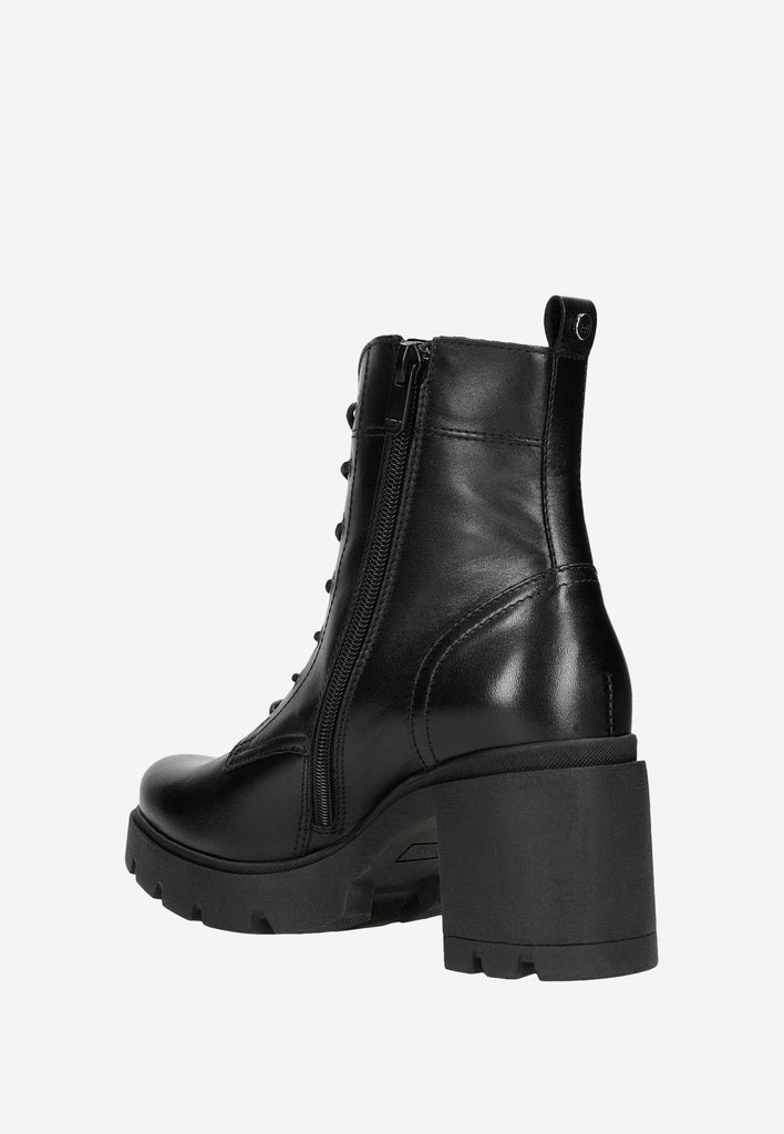 Wojas Black Insulated Leather Lace-Up & Zipper Chunky Heel Combat Boots | 6406051