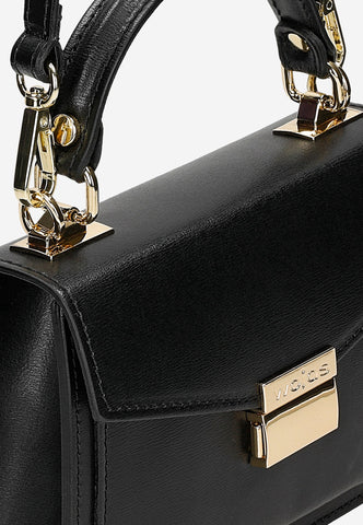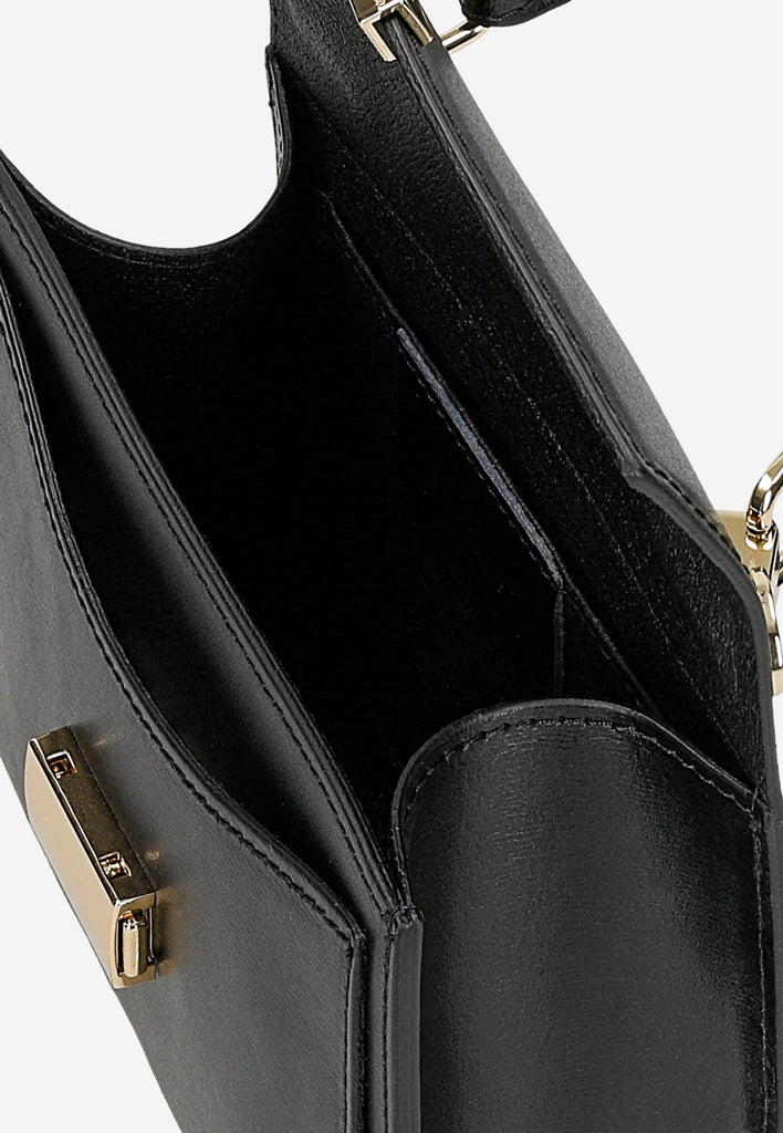 A very beautiful and elegant black crossbody bag will be a great choice for any occasion. This bag is made of high-quality natural leather and has a long strap that allows you to wear it on or over your shoulder.