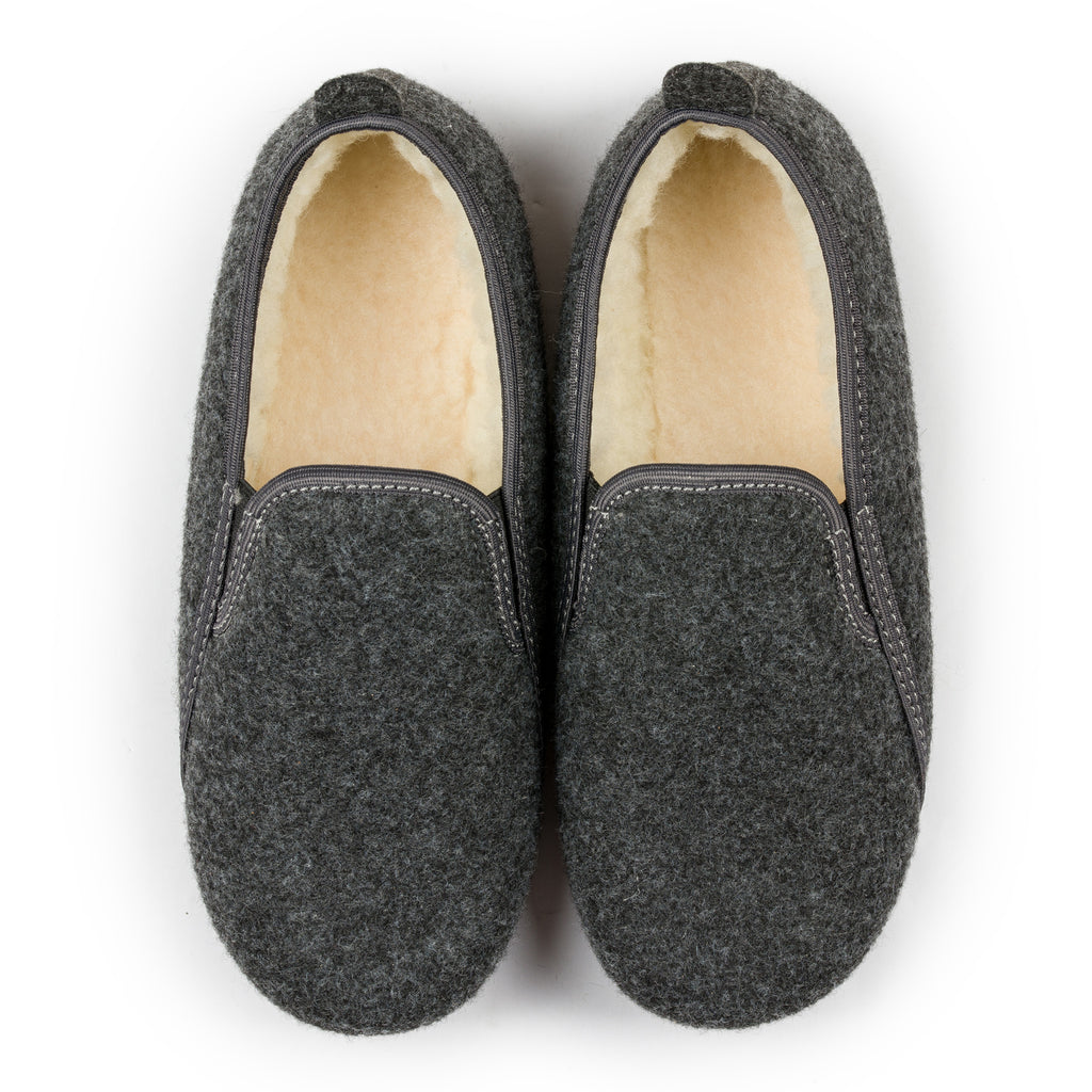 Warm and comfortable graphite slippers with fluffy cuff. The design guarantees durability while the interior provides excellent insulation that regulates the temperature inside.