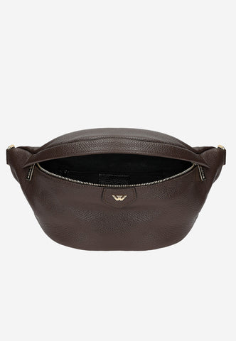 A very beautiful and elegant chocolate waist bag will be a great choice for any occasion. This bag is made of high-quality natural leather and has a long golden chain that allows you to wear it on or over your shoulder.