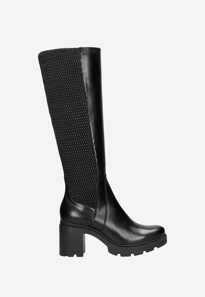 Beautiful black knee-high boots made of high-quality natural leather. These shoes have been designed in accordance with the latest fashion trends, which makes them an essential element of every woman's wardrobe.