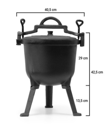 A solid and durable enameled cast iron pot is a great choice for anyone who likes cooking over an open fire. It will be perfect for backyard meetings with friends and family or fun camping adventure. Cooking in cast iron pots is very healthy - no toxic substances are released during cooking. The heat is evenly distributed on the walls of the pot, which allows you to prepare not only tasty but also healthy and nutritious dishes.