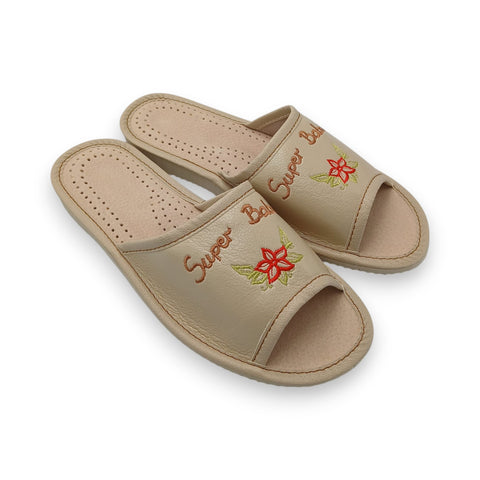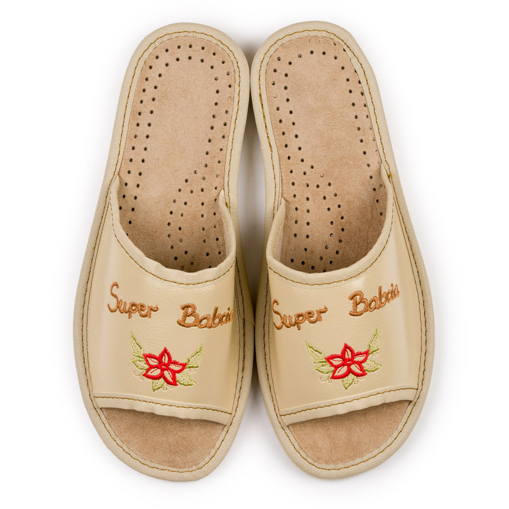 Wonderful leather slippers made of high-quality material. The design guarantees durability and great comfort. This product is a perfect gift idea for your grandma.