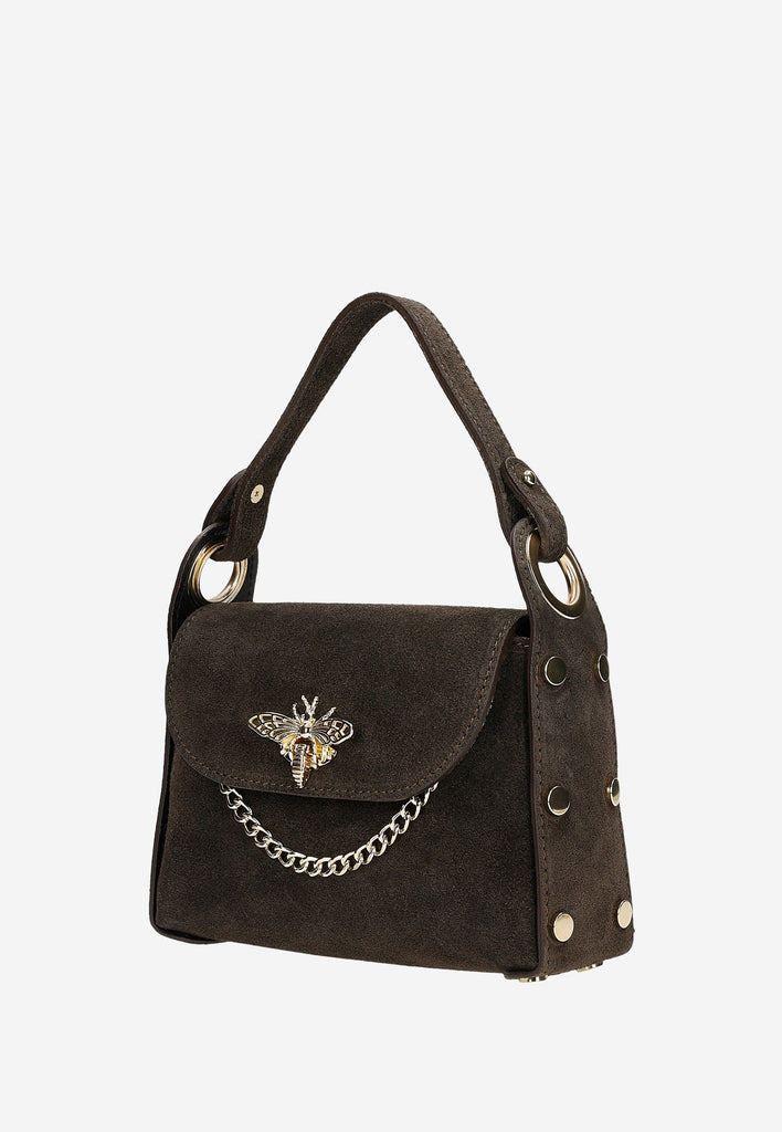 A very beautiful and elegant dark brown crossbody bag with a insect-shaped clasp will be great for any occasion. This bag is made of high-quality natural leather and has a long strap that allows you to wear it on or over your shoulder.