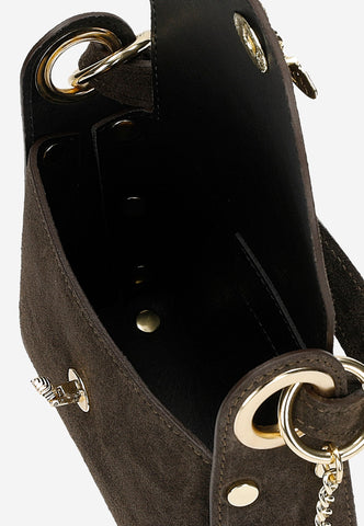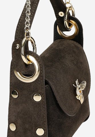 Wojas Dark Brown Leather Crossbody Bag with Golden Bee Accent | 8031862