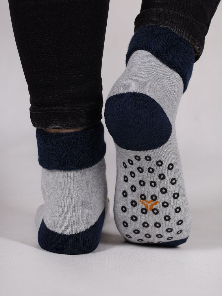 YO! Boys' Gray Ankle Socks with Animal Embroidery and ABS | SKF-0005C-A20AA